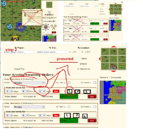 making one more step ... what about out of the towns menu a button that set the acount at "SOV mode" when SOV mode is on by just cliking at a map spot it leads you (without any other click) a the army order menu with pre-set the occoupy ( no need to roll down or press O to find it ) similar with hunting can be done the point is 1 ) you do not click from the map menu the send amry (-1 click) 2) you do not choose kind of order & time (-1 click -2 rolldown list)