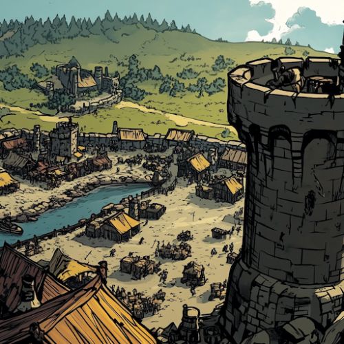![]() The Tower of Azrabel is strategically located in northern Lucerna, in close proximity to borders with the Middle Kingdom, Ragallon, and Norweld. This grand structure rises majestically amidst verdant hills and shadowed forests, where stone and timber blend together, exemplifying ancient architectural mastery interwoven with the haunting tales of bygone eras. Standing as a grey colossus that looks out over a wide expanse that espies the frontiers with its 3 regional neighbors, the tower's intricate, mannish stonework showcases the toil of expert craftsmanship in its construction, projecting both strength and solemnity. Built by the Fratri Hominis, a faction dedicated to the resurgence and glory of Humankind, the Tower of Azrabel serves as a stronghold of enduring human spirit and resolve. Over the centuries, the tower has been both a guardian and a beacon, safeguarding the inhabitants from interlopers crossing northern Lucerna's complex borders while inspiring the Fratri's citizens towards glory and reclamation across their realm. The Fratri Hominis have utilized the Tower of Azrabel as both a military bastion and a place for gathering human factions driven by shared goals and aspirations. Azrabel represents not just a physical fortress but the ideological stronghold of the Fratri Hominis, embodying their determination to unify and uplift humanity. The tower is closely linked to the Fratri's hub of Dolentis, which has the responsibility of maintaining the tower and supplying the troops stationed there. The Fratri Hominis, with their human-centered focus, are the driving force behind Azrabel's maintenance and its continued significance in Illyriad's geopolitical landscape. Thus, the Tower of Azrabel stands as both a relic of the past and a beacon for the future, deeply embedded in the lore and aspirations of the Fratri Hominis.