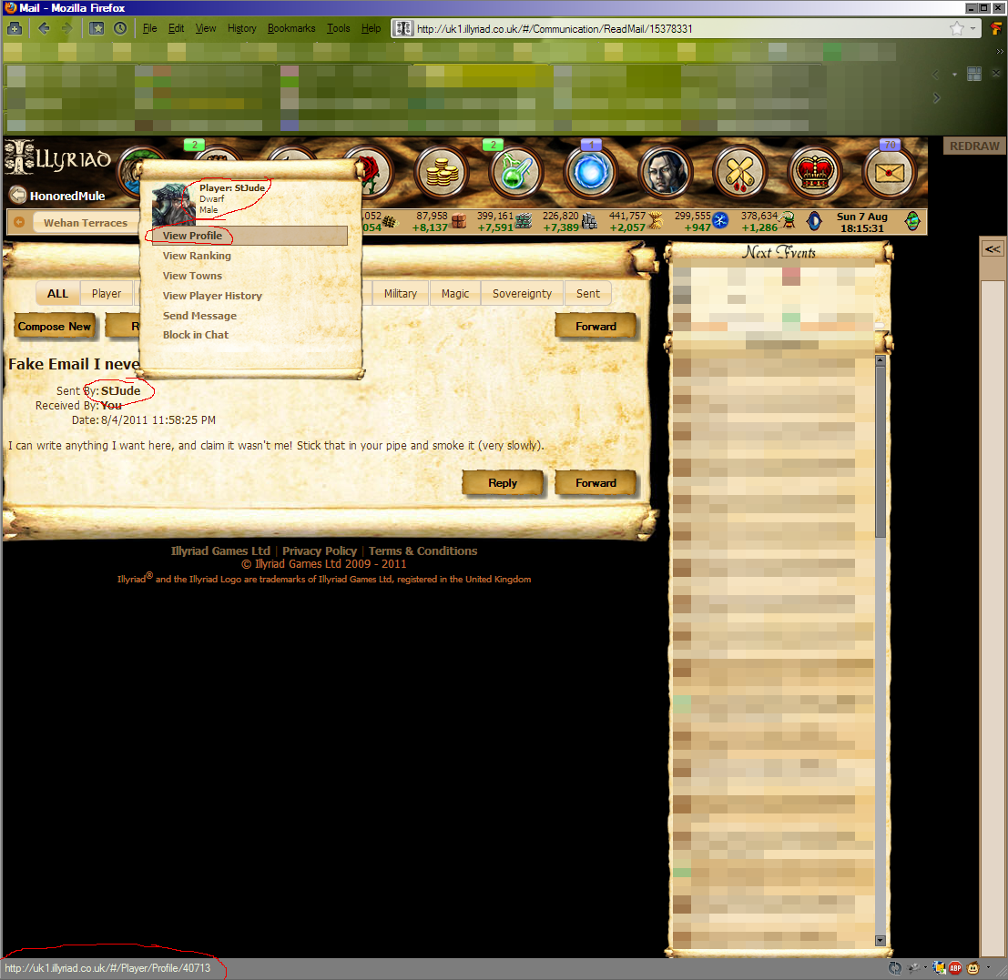 If you think a string of text has any shred of credibility above the claims of multiple sources, you vastly underestimate how easily anyone could type from scratch, or create by modifying the copied html of an existing unrelated email, or even easier still by modifying an Illyriad web page on the fly and then copying that. Ultimately both forms of "evidence" are just words typed in a box. But at least the latter is very likely involving actual distinct sources corroborating each other without conflict or discrepancy. |